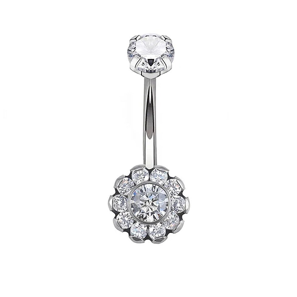 Navel jewels titanium astm f136 filettatura interna cz stone clear misura 1.6x10mm