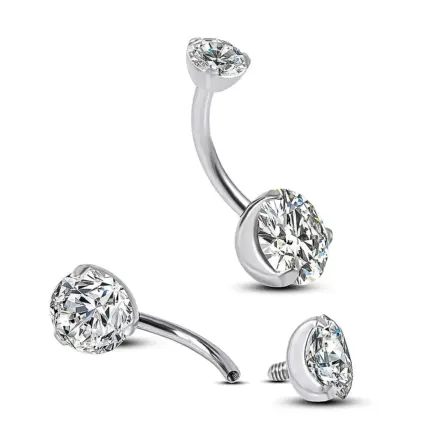 Titanio astm f136 da implantologia certificato filettatura interna cz stone clear. Ideale per piercing ombelico.