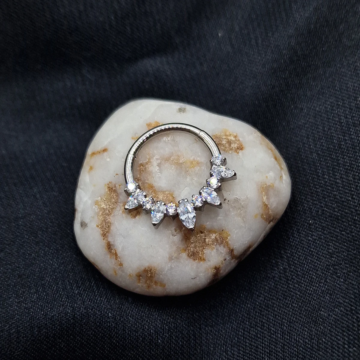 Titanio clicker ring Cz stone clear