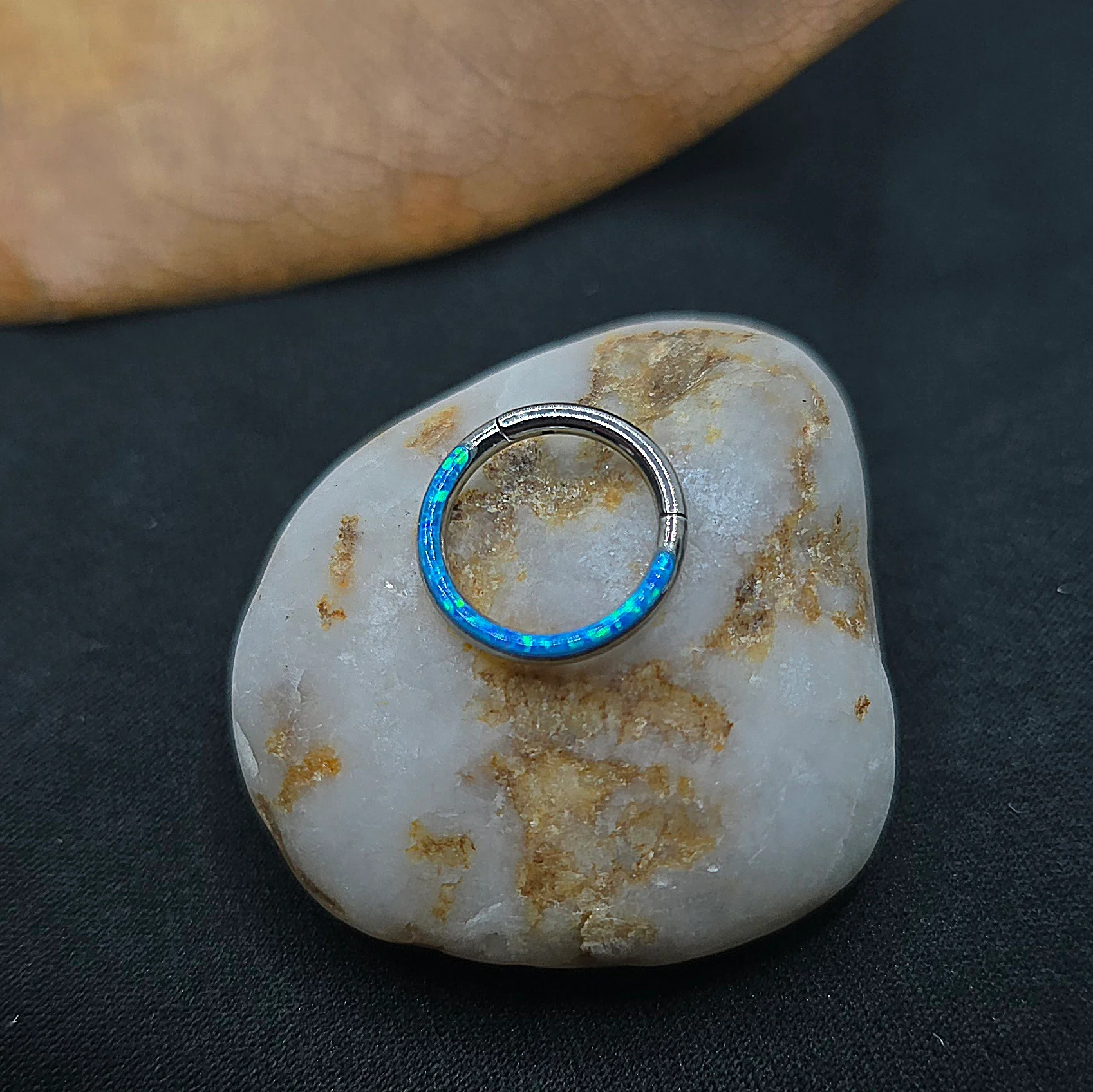 Titanio opal stone blue clicker ring
